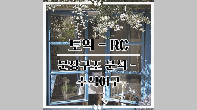 | [토익 - RC] 문장구조 분석 - 형식 (0) | 2022.07.03 |